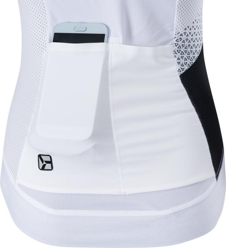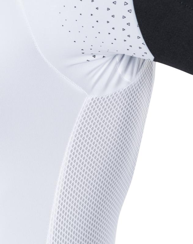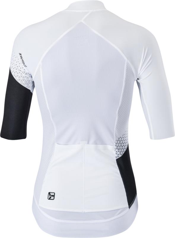 Dámsky cyklistický dres úzkeho strihu vyrobený z pružného a priedušného materiálu Light MESH. Dres má predĺžené rukávy rezané laserom, dlhý kostený zips a predĺžený chrbát s dvomi vreckami.Technický opis: