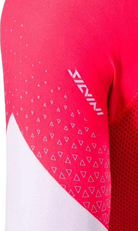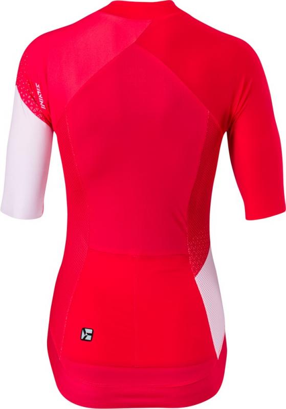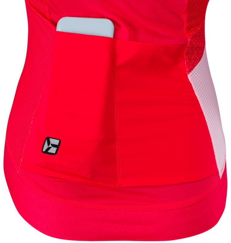 Dámsky cyklistický dres úzkeho strihu vyrobený z pružného a priedušného materiálu Light MESH. Dres má predĺžené rukávy rezané laserom, dlhý kostený zips a predĺžený chrbát s dvomi vreckami.Technický opis: