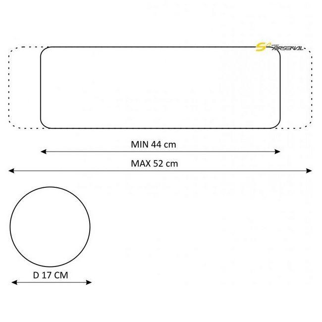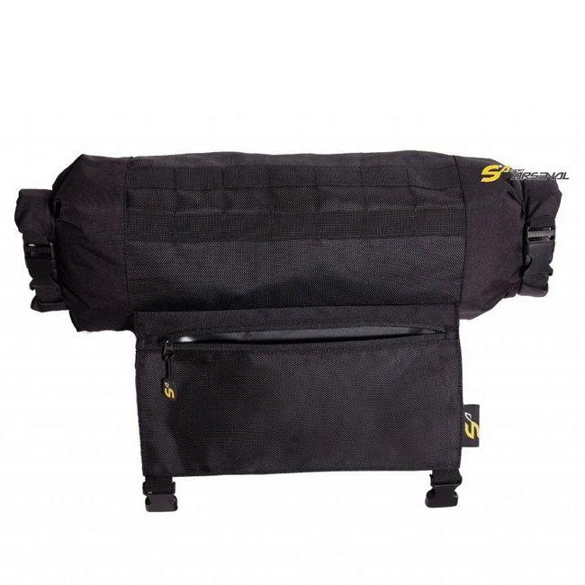 Veľmi praktické priečne riešenie tašky na riaditká s uchytením popruhmi, s objemom 10 litrov. Vďaka miestu uchytenia táto taška pasuje na každý typ bicykla. Priemer valca je 17 cm a jej objem si dokážete regulovať zarolovaním koncov až do maximálnej šírky 52 cm. Predná chlopňa je zaistená dvoma klipmi a obsahuje dva samostatné úložné priestory uzatvárateľné zipsami. Tie boli navrhnuté pre samostatné uloženie potrebných vecí, ako sú telefón, doklady, kľúče alebo peniaze. Predná spodná časť tašky obsahuje elastickú sťahovateľnú gumičku, pre uchytenie ďalšieho nákladu. Je vyrobená z vodeodolného (nie vodotesného) materiálu s vnútorným PVC poterom a vonkajšou impregnáciou.