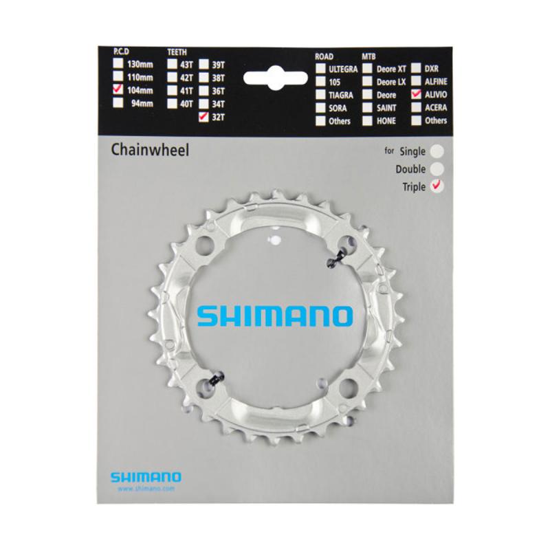 Typ: MTB, Celková váha balenia: 120g, Počet zubov na prevodníku: 32, Prevodníky: 9 rýchlostné, Pre kombináciu prevodníkov: 44/32/22, Počet prevodov: 3x9, Rozteč prevodníkov: 104mm, strieborný