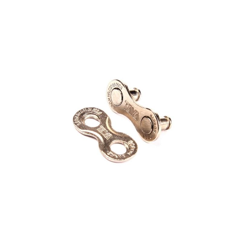 značka TAYA, strieborná spojka pre 9 rýchlostné reťaze, použiteľná pre Sunrace, Shimano, KMC, Sram... Univerzálna spojka pre rozmer reťaze: 1/2 x 11/128, 6,6mm, balenie obsahuje 1 spojku.