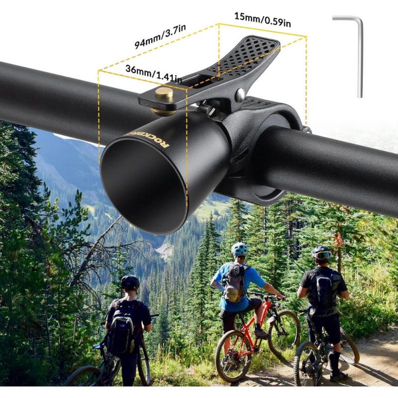 Značka Rockbros, Zvonček na bicykel obsahuje dva druhy dištančných držiakov pre rôzne typy riadidiel. Vhodný pre riadidlá 22 mm až 31,8 mm. Vzhľad zvončeka má retro design, je malý a nezaberá miesto na riadidlách. Je vyrobený z vysoko kvalitnej medenej zliatiny pre zvonivý a jasný zvuk. Zvonček dosahuje zvuk až 100 decibelov, efektívne upozorňuje chodcov
