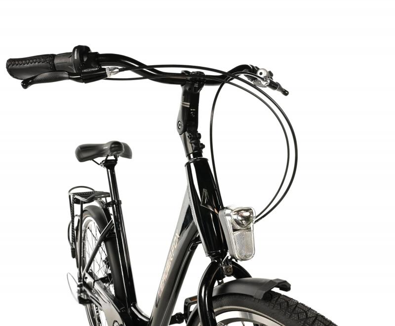 Mestský bicykel Leader Fox DOMESTA 26" s hliníkovým rámom, blatníkmi a batériovým LED osvetlením. Elegantný mestský dizajn s ľahkým nastupovaním.