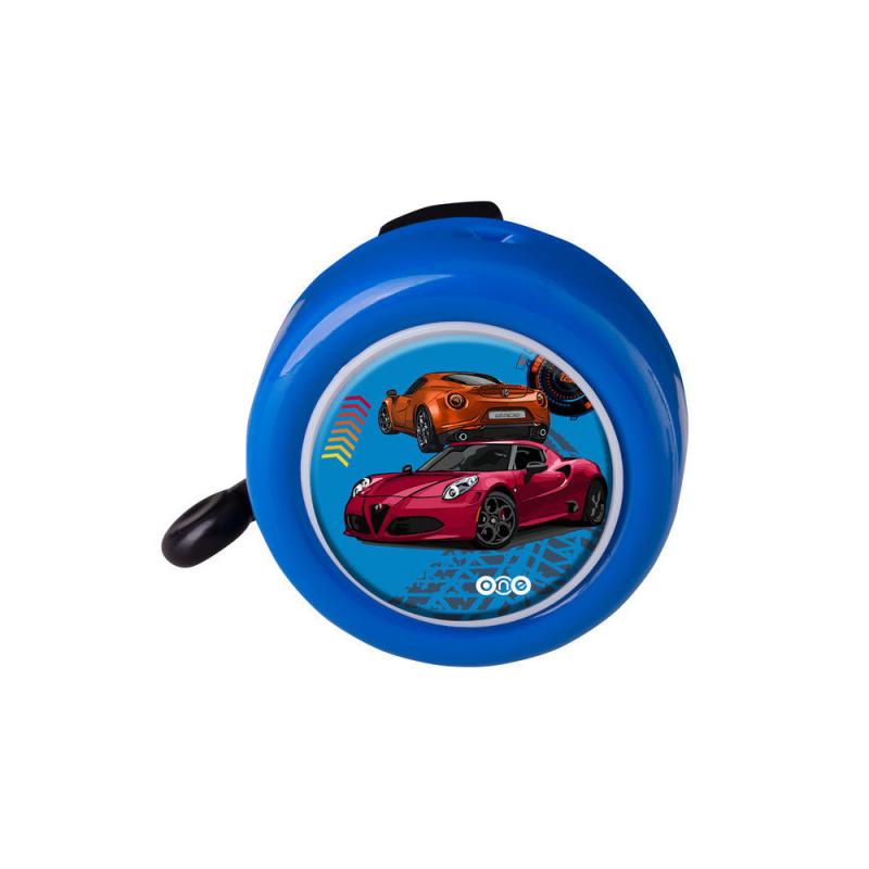 zvonček oceľ motív autá, na karte, modrý