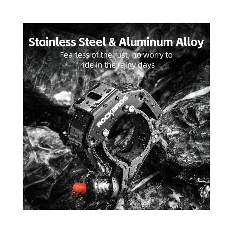 značka Rockbros, kompaktný, nerezový zvonček na bicykel. Materiál: nerez, dural. Hlasitosť 90 až 100 decibelov. Hmotnosť 24 gramov