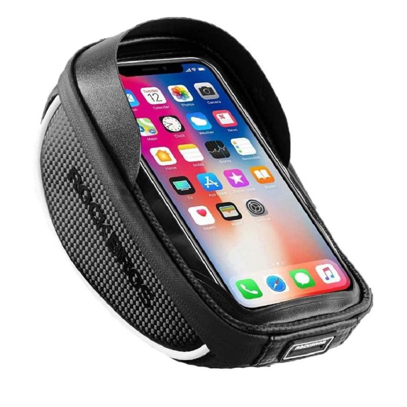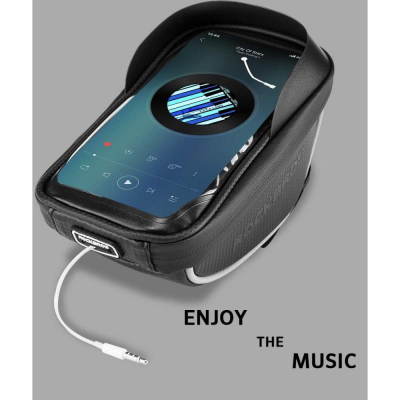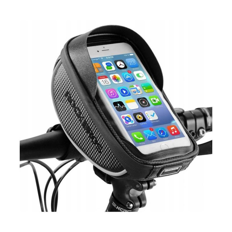 značka Rockbros, Štýlová taška na riadidlá. Vodotesné puzdro na telefóny do veľkosti 6,5“ s vysoko citlivým okienkom z TPU fólie. Taška je vyrobená z tvrdého vodotesného TPU, Eva a uhlíkových vlákien s otvorom pre slúchadlá. Vodotesný zips. Po stranách sa nachádzajú dve reflexné pásky. Veľká kapacita 1,4 litra. Hmotnosť 138g. Rozmer 18,9x11x11,5 cm.