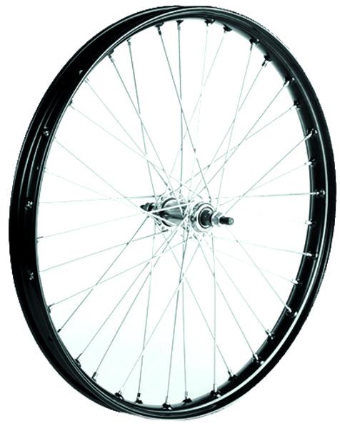 ručne vypletené koleso, určené pre montáž na ručné vozíky s mopedovými plášťami 2 1/4 - 19, 36-dierový oceľový ráfik 23-2 s komaxitovou úpravou - vyrobený v Českej republike, oceľový náboj Joytech S01E s kalenou oskou 10x100x160 mm na matice, pozinkovaný výplet 3 x 221 mm s mosadznými niplami 3 x 14 mm