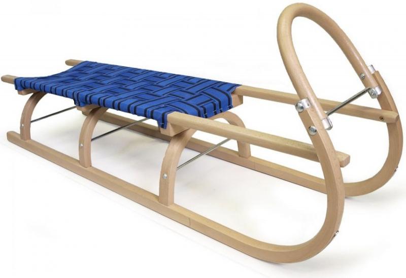 Sánky vyrobené z bukového dreva. Bukové drevo je tvrdé, a preto je odolné voči poškodeniu. Sane sú impregnované ekologickým lakom a podbité kovovými bežcami. Sedadlo je vyrobené z popruhu. Dĺžka saní je 95 cm.