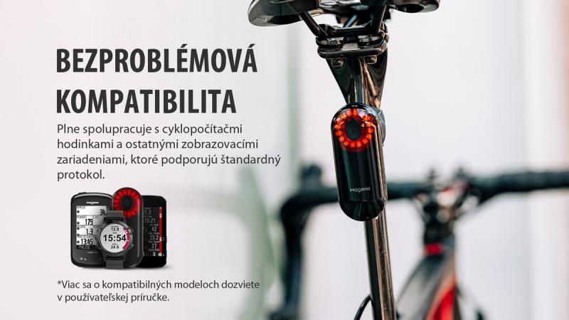 Zadné svetlo s radarom SEEMEE 508 je výsledkom dlhodobého výskumu a vývoja špičkových vedeckých a technologických produktov a inteligentných riešení. Zariadenie prijíma impulzné signály milimetrových vĺn a má 40° uhol vyžarovania, ktorý je schopný rozpoznať vozidlá až do 140 m a to aj v zákrutách. Ponúka inteligentný snímač vibrácií a dostatočnú svietivosť pre jazdu cez deň aj v noci. SEEMEE 508 disponuje širokým 220° pozorovacím uhlom s viditeľnosťou až 1,2 km a účinným varovaním pred približujúcimi sa vozidlami, čo zaručuje bezpečnú jazdu.Prostredníctvom štandardného protokolu ANT+ radaru je možné SEEMEE 508 pripojiť k cyklopočítačom, hodinkám alebo iným zobrazovacím zariadeniam. Zariadenie poskytuje vizuálne a zvukové upozornenia pomocou displeja na zozadu blížiace sa vozidlá a to až na vzdialenosť 140 metrov, pomáhajúc jazdcom ostať v plnej pohotovosti. Ak sa vozidlo priblíži do vzdialenosti 140 m, zadné svetlo prejde do režimu blikania, čím upozorní približujúce sa vozidlo, aby sa držalo v bezpečnej vzdialenosti a tým pádom ochráni cyklistu pred bezpečnostnými rizikami. SEEMEE 508 je taktiež vybavené vstavaným, vysoko precíznym akcelerátorom, ktorý dostatočne rýchlo rozpozná brzdenie a 3 sekundovým blikaním identifikuje hoci aj mierne brzdenie, pričom ignoruje otrasy a malé nerovnosti, aby sa predišlo chybnej aktivácii. Svetlo prejde po 5 minútach nečinnosti do režimu spánku a automaticky sa aktivuje pri akýchkoľvek opätovných vibráciách. Ovládanie SEEMEE 508 je veľmi jednoduché. Dlhým stlačením spínača sa zapína a vypína zadné svetlo a krátkym stláčaním je možné prechádzať 6 režimami (STÁLE SVETLO, BLIKANIE, PULZ, PELOTÓN, ROTÁCIA, IBA RADAR). Pomocou aplikácie MAGENE Utility APP je možné prednastaviť zapnutie/vypnutie radaru v hociktorom režime osvetlenia, pre vami preferované nastavenie. Taktiež je možné prispôsobenie intervalu blikania/pulzu a exkluzívneho režimu. So štvrťotáčkovým držiakom možno SEEMEE 508 jednoduchým pootočením pripevniť alebo odpojiť. Integrovaná gumená podložka je kompatibilná s okrúhlymi aero sedlovkami v tvare D. Bezpečnostná šnúrka zabraňuje poškodeniu náhodným odistením. Svetlo je napájané nabíjateľnou batériou s výdržou až 16 hodín a obľúbeným nabíjacím portom USB-C s funkciou rýchleho nabíjania. Svetlo je plne nabité za približne 3 hodiny. Precízne spracovanie a kvalitné materiály robia SEEMEE 508 ideálnym spoločníkom pri bezpečnom zdolávaní cestných dobrodružstiev. Svetlo je IPX7 vodotesné, čo ho určuje do každého počasia.