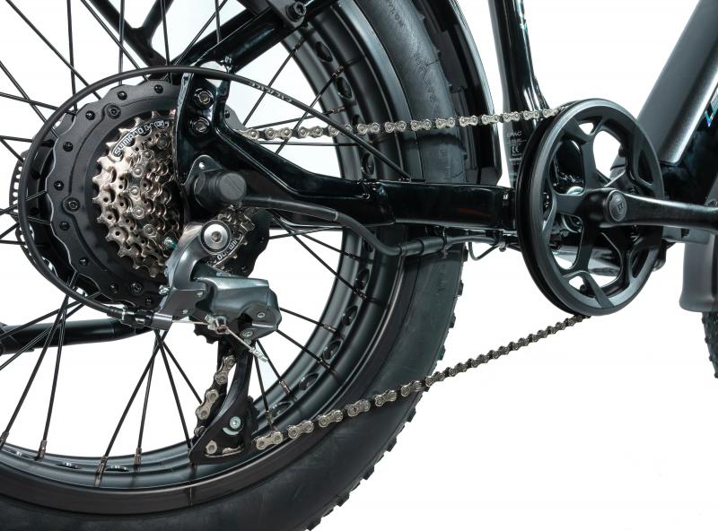 Zadný elektromotor Bafang vyniká veľmi plynulým a tichým chodom. Ponúka nominálny výkon 250W a maximálny výkon 350W s plne dostačujúcim krútiacim momentom 80 Nm pre jazdu v meste.