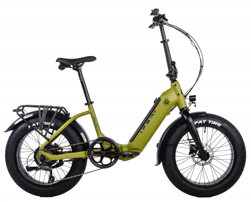 Novinka. Skladací FAT Bike Leader Fox CODY 20" so zadným elektromotorom, hliníkovým rámom, elegantným dizajnom, pevnou prednou vidlicou a kotúčovými brzdami. Zaručuje stabilitu, priľnavosť a komfortné ovládanie na každej ceste.Stabilita na každom povrchu: