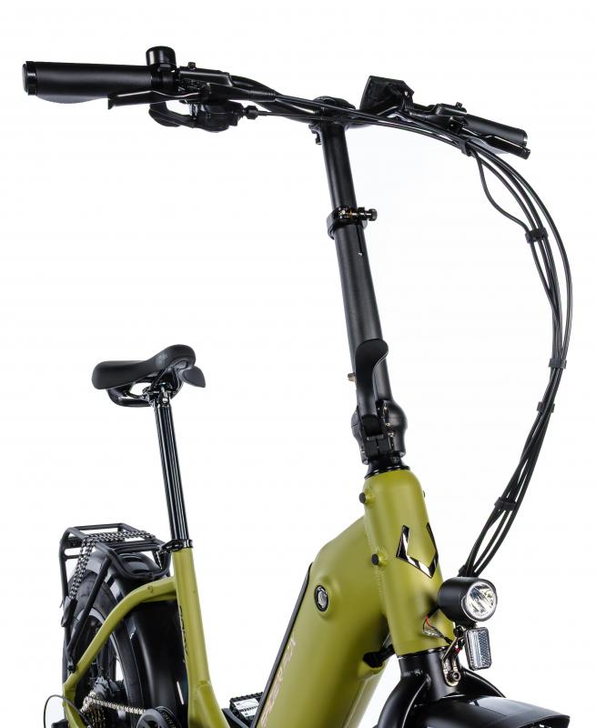 Ebike CODY si zachováva vysokú pohyblivosť a praktickosť skladacieho kolesa pri robustnej a odolnej konštrukcii, čo z neho robí skvelú voľbu pre mestské prostredie. Kvalitné predné LED osvetlenie vám zaistí dostatočnú viditeľnosť pri jazde po tme. Na zadnom nosiči môžete pohodlne prevážať svoju pracovnú tašku alebo športovú tašku.