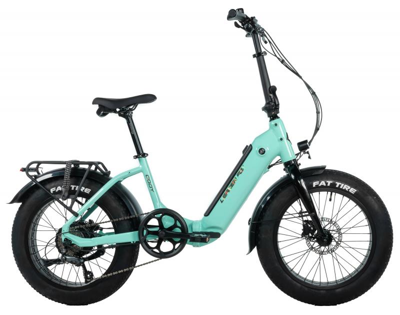 Novinka. Skladací FAT Bike Leader Fox CODY 20" so zadným elektromotorom, hliníkovým rámom, elegantným dizajnom, pevnou prednou vidlicou a kotúčovými brzdami. Zaručuje stabilitu, priľnavosť a komfortné ovládanie na každej ceste.