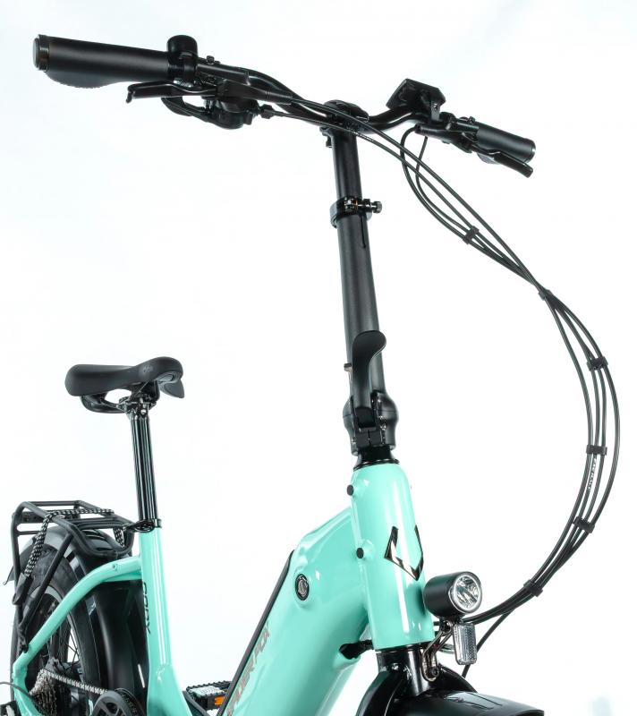 Ebike CODY si zachováva vysokú pohyblivosť a praktickosť skladacieho kolesa pri robustnej a odolnej konštrukcii, čo z neho robí skvelú voľbu pre mestské prostredie. Kvalitné predné LED osvetlenie vám zaistí dostatočnú viditeľnosť pri jazde po tme. Na zadnom nosiči môžete pohodlne prevážať svoju pracovnú tašku alebo športovú tašku.