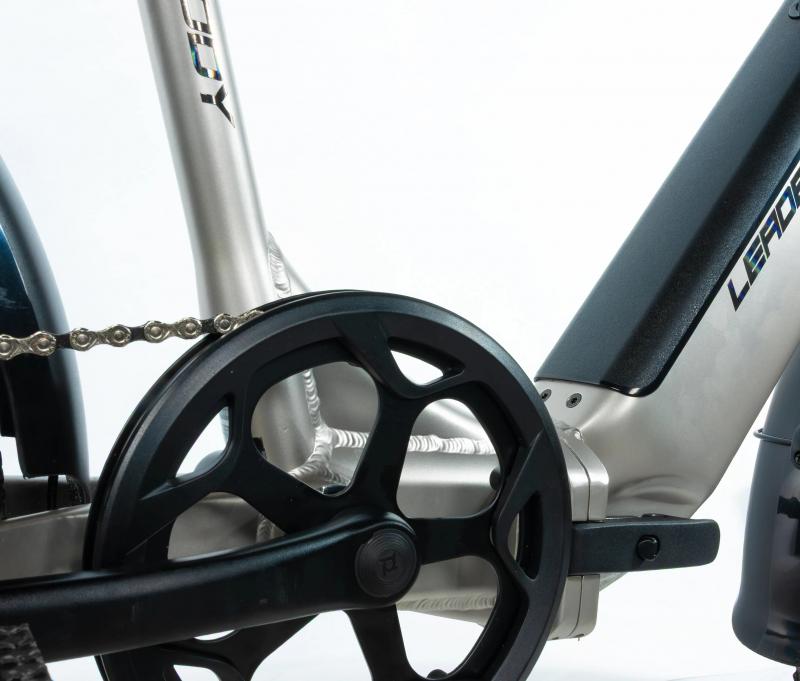Zadný elektromotor Bafang vyniká veľmi plynulým a tichým chodom. Ponúka nominálny výkon 250W a maximálny výkon 350W s plne dostačujúcim krútiacim momentom 80 Nm pre jazdu v meste.