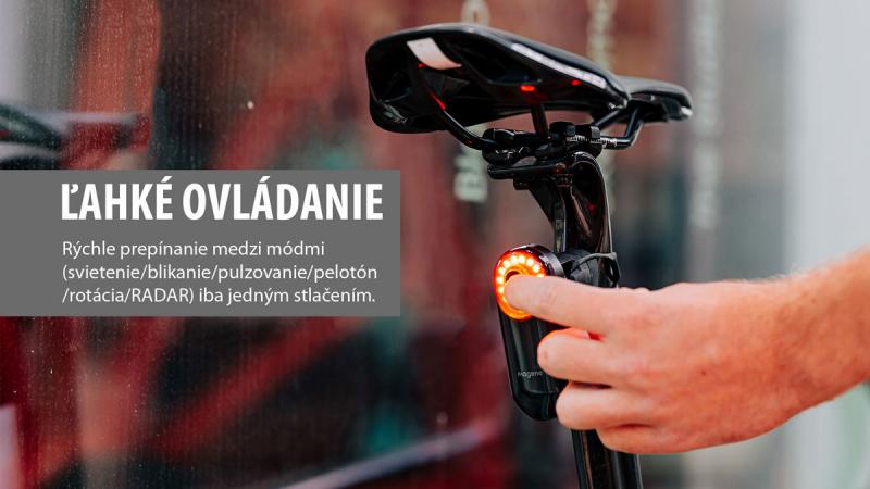 Zadné svetlo s radarom SEEMEE 508 je výsledkom dlhodobého výskumu a vývoja špičkových vedeckých a technologických produktov a inteligentných riešení. Zariadenie prijíma impulzné signály milimetrových vĺn a má 40° uhol vyžarovania, ktorý je schopný rozpoznať vozidlá až do 140 m a to aj v zákrutách. Ponúka inteligentný snímač vibrácií a dostatočnú svietivosť pre jazdu cez deň aj v noci. SEEMEE 508 disponuje širokým 220° pozorovacím uhlom s viditeľnosťou až 1,2 km a účinným varovaním pred približujúcimi sa vozidlami, čo zaručuje bezpečnú jazdu.Prostredníctvom štandardného protokolu ANT+ radaru je možné SEEMEE 508 pripojiť k cyklopočítačom, hodinkám alebo iným zobrazovacím zariadeniam. Zariadenie poskytuje vizuálne a zvukové upozornenia pomocou displeja na zozadu blížiace sa vozidlá a to až na vzdialenosť 140 metrov, pomáhajúc jazdcom ostať v plnej pohotovosti. Ak sa vozidlo priblíži do vzdialenosti 140 m, zadné svetlo prejde do režimu blikania, čím upozorní približujúce sa vozidlo, aby sa držalo v bezpečnej vzdialenosti a tým pádom ochráni cyklistu pred bezpečnostnými rizikami. SEEMEE 508 je taktiež vybavené vstavaným, vysoko precíznym akcelerátorom, ktorý dostatočne rýchlo rozpozná brzdenie a 3 sekundovým blikaním identifikuje hoci aj mierne brzdenie, pričom ignoruje otrasy a malé nerovnosti, aby sa predišlo chybnej aktivácii. Svetlo prejde po 5 minútach nečinnosti do režimu spánku a automaticky sa aktivuje pri akýchkoľvek opätovných vibráciách. Ovládanie SEEMEE 508 je veľmi jednoduché. Dlhým stlačením spínača sa zapína a vypína zadné svetlo a krátkym stláčaním je možné prechádzať 6 režimami (STÁLE SVETLO, BLIKANIE, PULZ, PELOTÓN, ROTÁCIA, IBA RADAR). Pomocou aplikácie MAGENE Utility APP je možné prednastaviť zapnutie/vypnutie radaru v hociktorom režime osvetlenia, pre vami preferované nastavenie. Taktiež je možné prispôsobenie intervalu blikania/pulzu a exkluzívneho režimu. So štvrťotáčkovým držiakom možno SEEMEE 508 jednoduchým pootočením pripevniť alebo odpojiť. Integrovaná gumená podložka je kompatibilná s okrúhlymi aero sedlovkami v tvare D. Bezpečnostná šnúrka zabraňuje poškodeniu náhodným odistením. Svetlo je napájané nabíjateľnou batériou s výdržou až 16 hodín a obľúbeným nabíjacím portom USB-C s funkciou rýchleho nabíjania. Svetlo je plne nabité za približne 3 hodiny. Precízne spracovanie a kvalitné materiály robia SEEMEE 508 ideálnym spoločníkom pri bezpečnom zdolávaní cestných dobrodružstiev. Svetlo je IPX7 vodotesné, čo ho určuje do každého počasia.
