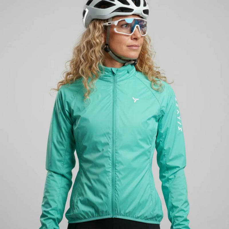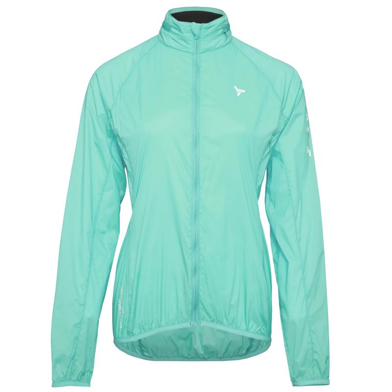 Dámska cyklistická bunda Gela so zapínaním na zips je vyrobená z veľmi ľahkého a husto tkaného materiálu Windbreaker, ktorý zaisťuje vynikajúcu odolnosť voči vetru.