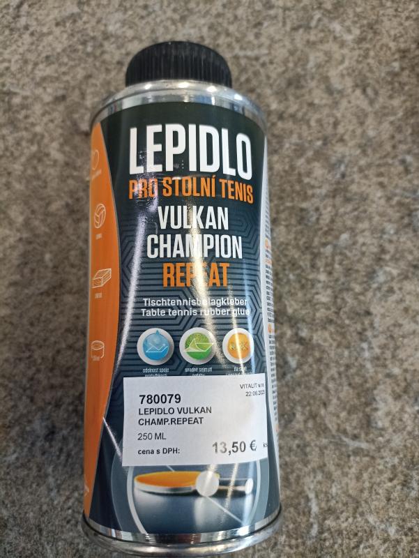 Lepidlo Vulkan Champion Repeat, 250 ml. Tento výrobok nie je schválený ITTF.