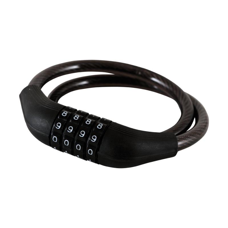Pevný lankový špirálový zámok s otváraním na voliteľný 4 číselný kód s vysokou mierou bezpečnosti. Číselný kód je možné kedykoľvek opätovne zmeniť. Zámok slúži pre ochranu bicykla alebo doplnkov proti príležitostnej krádeži.