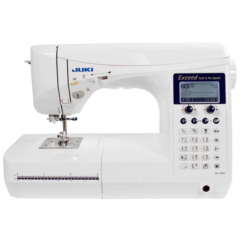 Šijací stroj JUKI Exceed Quilt & Pro Special HZL F600 je multifunkčný elektronický šijací stroj vysokej kvality na domáce šitie. Stroj je vybavený automatickým odstrihom hornej aj spodnej nite, 225 šijacími programami vrátane funkcie náhodných quiltovacích stehov, 4 typmi písma, priemyselným systémom podávania látky a veľkým prehľadným displejom. Súčasťou šijacích strojov Juki HZL-F600 je nožný spúšťač, ktorý umožňuje ovládať aj odstrih nite (stlačením pedála pätou) a kolenná páka. Nový rozmer v navliekaní nite očkom ihly prináša automatický navliekač ihly, stačí len stlačiť páku dolu a niť je navlečená. Užitočné elektronické funkcie umožňujú na stroji šiť aj bez použitia pedála (tlačidlo štart/stop) a regulovať rýchlosť šitia priamo na stroji, polohovať ihlu hore aj dole a automaticky zapošívať. Obdĺžnikový systém podávania látky bežne používaný u priemyselných strojov zaručuje rovnomerné podávanie tenkých aj extra silných materiálov vrátane rifľoviny. Súčasťou balenia je prídavný stolík na rozšírenie pracovnej plochy. Tento šijací stroj je vhodný na patchwork a quilting ako aj ďalšie kreatívne šitie v domácnosti.