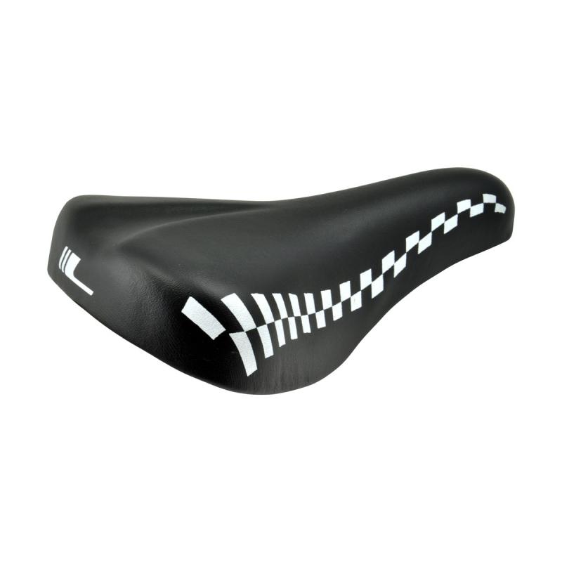 Klasické juniorské MTB sedlo s príjemným a odolným povrchom z Vinylu. Pohodlie zabezpečuje polyuretánová pena vložená medzi kostru sedla a povrchový materiál. Kostra sedla je vyrobená z polypropylénu (PP) do ktorého sú vsadené oceľové koľajničky so zámkom na sedlovku.