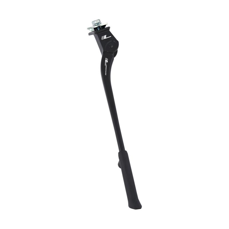 Hliníkový elegantný stojan s centrálnym upevnením pod rám. Ľahko nastaviteľná dĺžka stojana za pomoci šesťhranného kľúča. Vhodný na 24-28" palcové kolesá. Súčasťou je oceľový protikus a skrutka na upevnenie stojana.