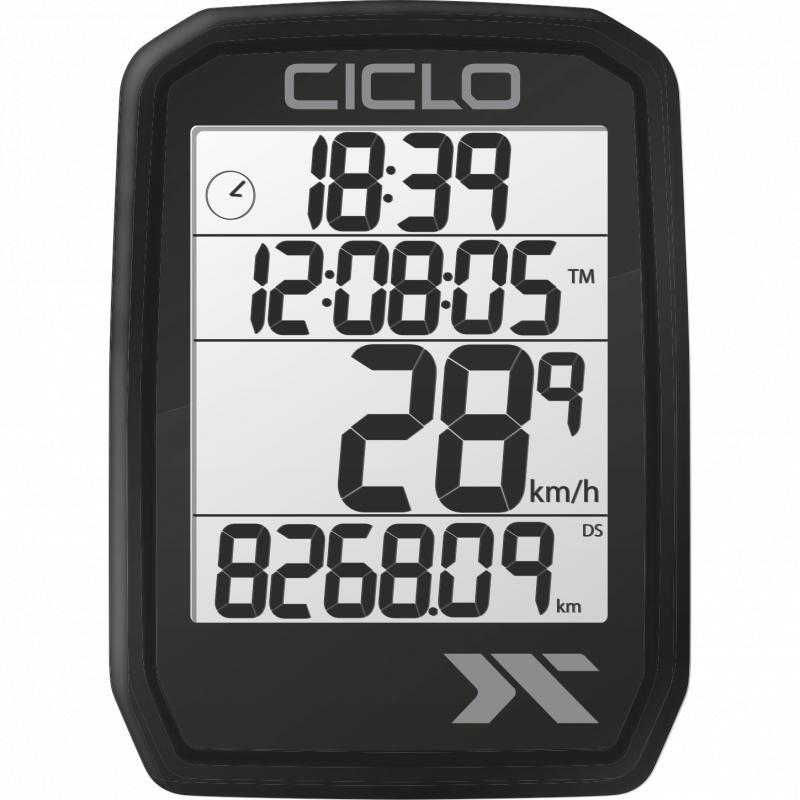 ento cyklo komputer ponúka jednoduché „bez tlačidlové“ ovládanie a extra prehľadný 4 riadkový displej, ktorý zobrazuje naraz všetky potrebné funkcie bez nutnosti prepínania. Robustný vymeniteľný ochranný gumený kryt po obvode prístroja, zabezpečuje jeho zvýšenú ochranu pred mechanickým poškodením.Funkcie: