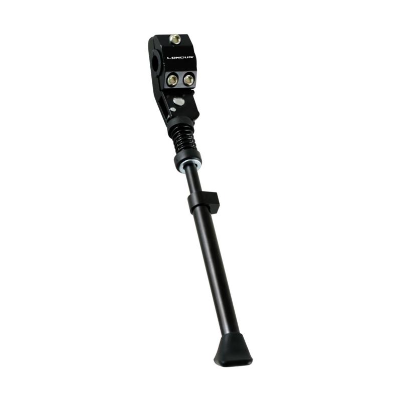 Klasický hliníkový stojan s upevnením na spodnú trubku zadnej vidlice. Ľahko nastaviteľná dĺžka stojana. Vhodný na 24-28" palcové kolesá. Pevný hliníkový úchyt s tromi skrutkami a gumenou podložkou.