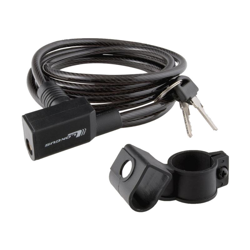 Klasický lankový zámok s uzamykaním na kľúč s držiakom na rám alebo sedlovku. Zámok slúži pre ochranu bicykla alebo doplnkov proti príležitostnej krádeži.Dĺžka: 1200 mm