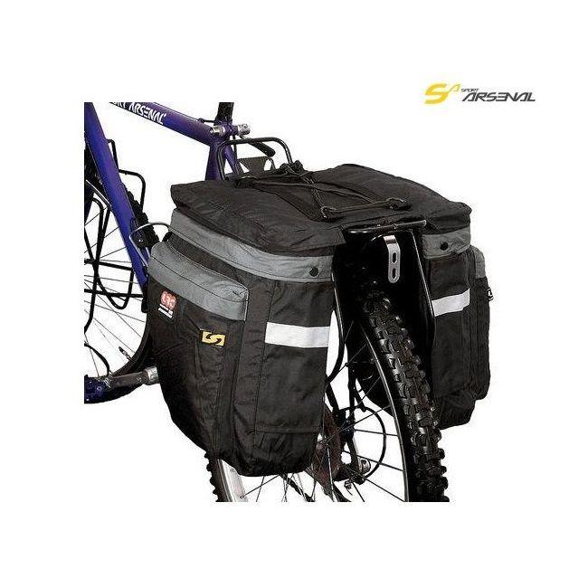 Veľká a praktická dvojtaška na zadný nosič aj pre niekoľkodňové výpravy, s objemom 20 litrov. Uchytenie tašky k nosiču zabezpečujú suché zipsy a následne jej polohu viete zaistiť spodnými elastickými gumičkami s hákmi. Dva veľké a dva menšie úložné priestory sú uzatvárateľné prekrývanými zipsami. Ďalšie dve otvorené vrecká sú predurčené na fľašu s nápojom až do objemu 1,5 litra. Horná plocha obsahuje elastickú sťahovateľnú gumičku, pre uchytenie ďalšieho nákladu. Taška je kompatibilná so všetkými zadnými rámovými nosičmi v našej ponuke. Súčasťou balenia je aj ochranný návlek proti nečistotám alebo vlhkosti. Je vyrobená z vodeodolného (nie vodotesného) materiálu s vnútorným PVC poterom a vonkajšou impregnáciou. Pre zvýšenie bezpečnosti na cestách sa na zadnej aj na oboch bočných stranách nachádza našitý 3M reflexný prvok.- rozmer: 33 x 12-18 x 33 cm