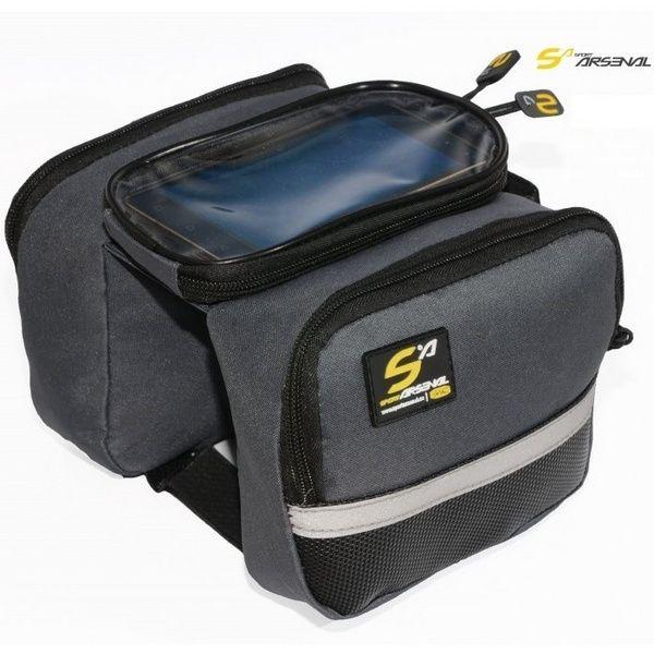Dvojtaška s montážou na vrchnú rámovú trubku a púzdrom pre vloženie telefónu. Taška má dve rovnaké postranné tašky uzatvárateľné zipsami a na vrchnej strane sa nachádza púzdro pre telefón s vnútorným rozmerom 18 x 8,5 cm. Obsluha telefónu je možná aj cez vrchnú dotykovú fóliu. Súčasťou tašky je aj návlek proti znečisteniu. Obsahuje reflexné prvky.