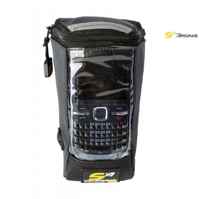 Malá taška na telefón s objemom iba 0,5 litra a s uchytením na riaditká a predstavec, vhodná napríklad pre malý telefón alebo MP3 prehrávač. Do tejto tašky dokážete zmestiť malý telefón, kľúče, prípadne malú peňaženku. Na riaditká a predstavec sa upína pomocou suchých zipsov a z ľavej bočnej strany má pripravený prestup pre kábel slúchadiel. Z prednej strany má priehľadnú dotykovú fóliu s rozmermi 10 x 6 cm, pre obsluhu vloženého zariadenia. Je vyrobená z vodeodolného (nie vodotesného) materiálu s vnútorným PVC poterom a vonkajšou impregnáciou.- rozmer: 17 x 7-9,5 x 4-7 cm