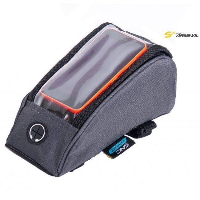 Taška na mobilný telefón s uchytením na hornú rámovú trubku ku predstavcu, s objemom 1,8 litra a s dotykovou fóliou navrchu cez ktorú môžete ovládať telefón aj zasunutý vo vnútri. Do tašky s týmto objemom dokážete zmestiť bežne potrebné veci každého cyklistu, ako sú telefón, powerbank, peňaženka, kľúče, prípadne energetická tyčinka. Je vyrobená z vodeodolného (nie vodotesného) materiálu s vnútorným PVC poterom a vonkajšou impregnáciou. K rámu sa uchytáva pomocou suchých zipsov a z prednej strany má pripravený prestup pre kábel slúchadiel. Vnútorný rozmer pre mobilný telefón je 80 x 150 mm.
