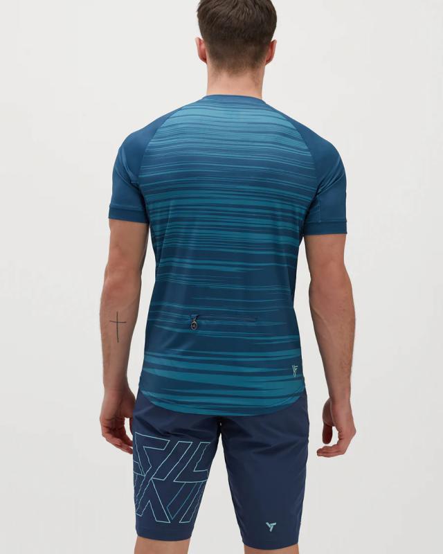 Pánsky cyklistický dres s krátkym zipsom, predĺženým zadným dielom a voľnejším strihom.-volný strih
