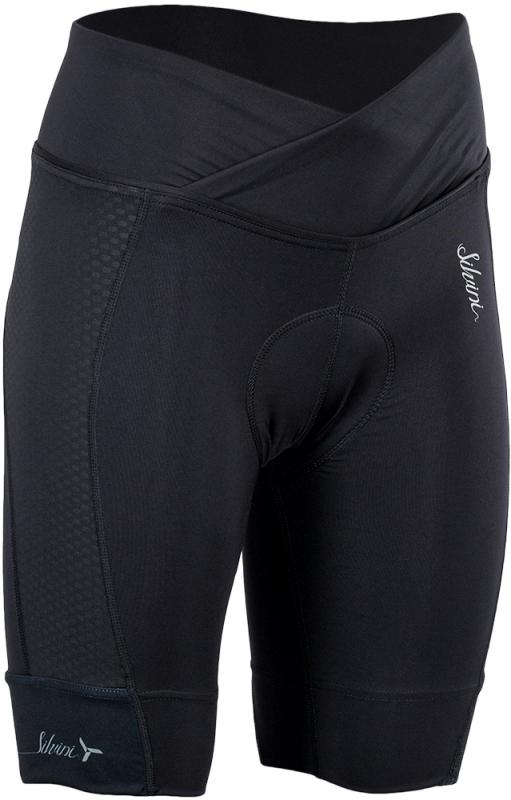 Dámske cyklistické šortky do pásu so širokým pásovým okrajom a s protišmykovým pásikom na dolnej časti nohavičiek. Majú cyklistickú vložku z coolmax materiálu a ochranné reflexné prvky.Farba: ČIERNA
