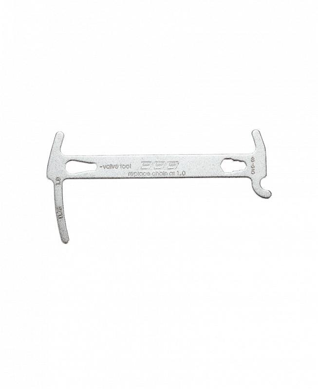 Je vybavený kľúčom na ventil a kľúčmi 5/6/8 mm, čo z neho robí unikátne multi-náradie.