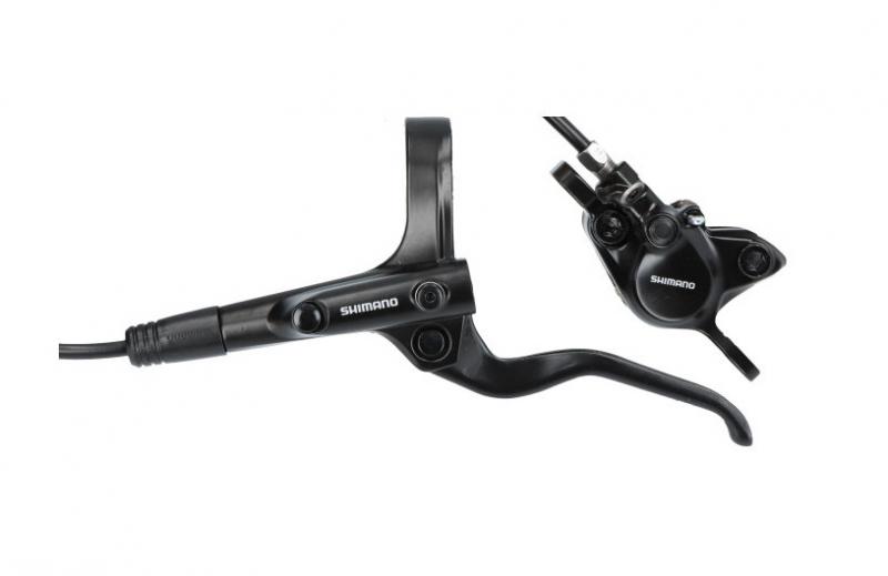 Kotúčová brzda MT201. Zložená z brzdovej páky BLMT201 a strmeňa BRMT200 bez adaptéra, spojená hadicou BH59-SS. Platničky-resin B01S.