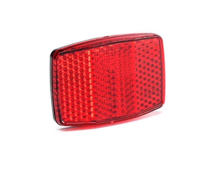 Zadné ploché odrazové sklo obdĺžníkové pre priamu montáž na blatník s vystredením aretačným kolíkom alebo pomocou držiaku k priečke zadnej stavby rámu, prípadne na stĺpik sedla pomocou objímkového držiaku. Aretačný kolík s priemerom 5,08 mm. Rozmery: 55x40 mm, dodáva sa so skrutkou M5x10, maticou a podložkou.