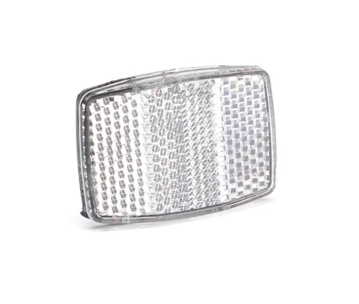 Predné obdĺžníkové odrazové sklo pre montáž pomocou objímkového držiaku na kormidlo, stĺpik predstavca alebo pomocou vysunutého držiaku na korunku vidlice. Aretačný kolík 5,08 mm pre montáž na držiak. Rozmery: 55x40 mm, dodáva sa so skrutkou M5x10, podložkou a maticou. Materiál: plast / polymetylmetakrylát (PMMA) - akrylové sklo.