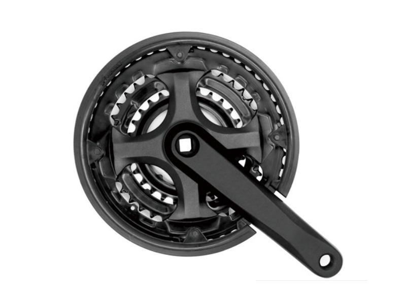 Oceľový MTB trojprevodník s počtom zubov 48 x 38 x 28 zubov, čiernymi poplastovanými kľukami a čiernym krytom prevodníka. Odporúčaná dĺžka osky stredového zloženia: 120 mm. Hmotnosť: 1387 g